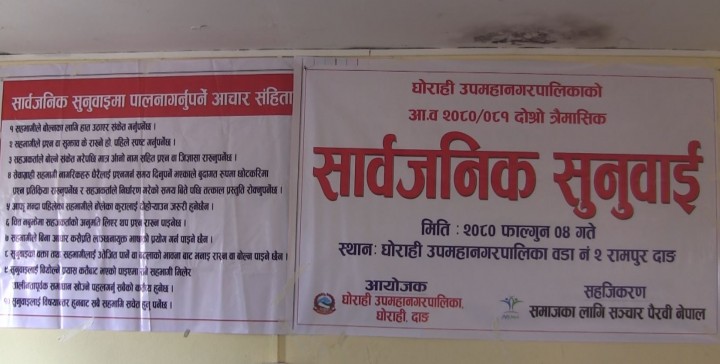 घोराही उपमहानगरपालिकाको दोश्रो त्रैमासिक सार्वजनिक सुनुवाई गरिएको छ ।