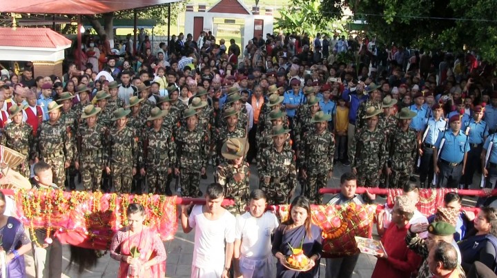 दाङ घोराहीको अम्बिकेश्वरी मन्दिरमा विधिपूर्वक पूजा गरी फूलपाती भित्र्याईयो